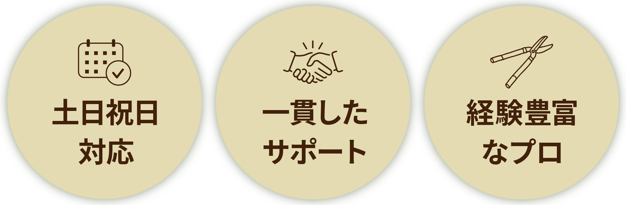 大木の伐採から、マツ、マキの剪定、生垣の刈り込み、草刈り、防草シート、砂利敷まで、お客様のニーズにしっかり応えます。